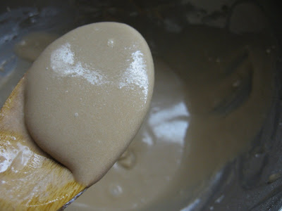 Mix it all together. I used a wooden spoon at first, just to be rustic, but it was lumpy, so I used the mixer.